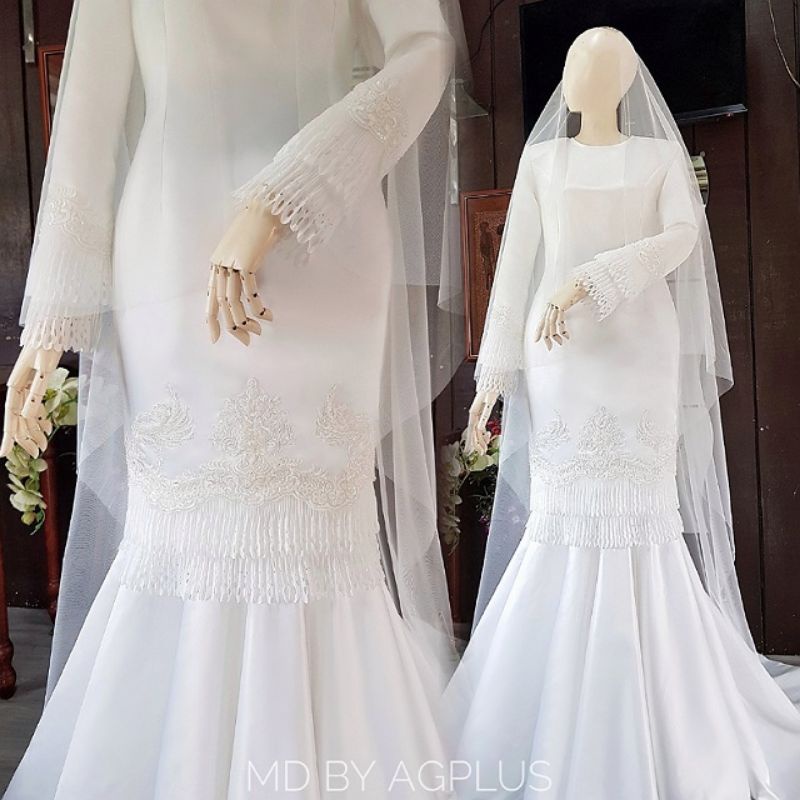 Mustika kurung pahang lace labuh baju nikah kahwin pengantin tunang raya bride. Paling keren baju kurung akad nikah warna putih.